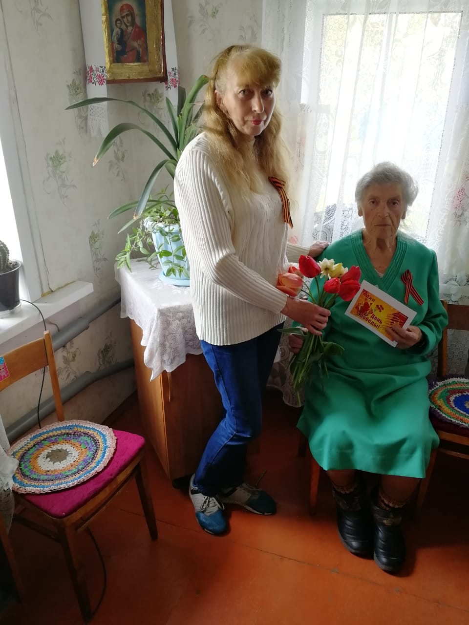 Заведующие отделениями и социальные работники ОБУСО «КЦСОН С уджанского района» тепло поздравили с 77–летием Великой Победы подопечных, находящихся на социальном обслуживании на дому, вручая цветы и открытки. Многие в силу возраста и состояния здоровья, принимали поздравления дома. Труженик тыла Минченко Ольга Михайловна, в сопровождении социального работника Поповкиной Ольги Николаевны, возложила цветы к памятнику Советским воинам.