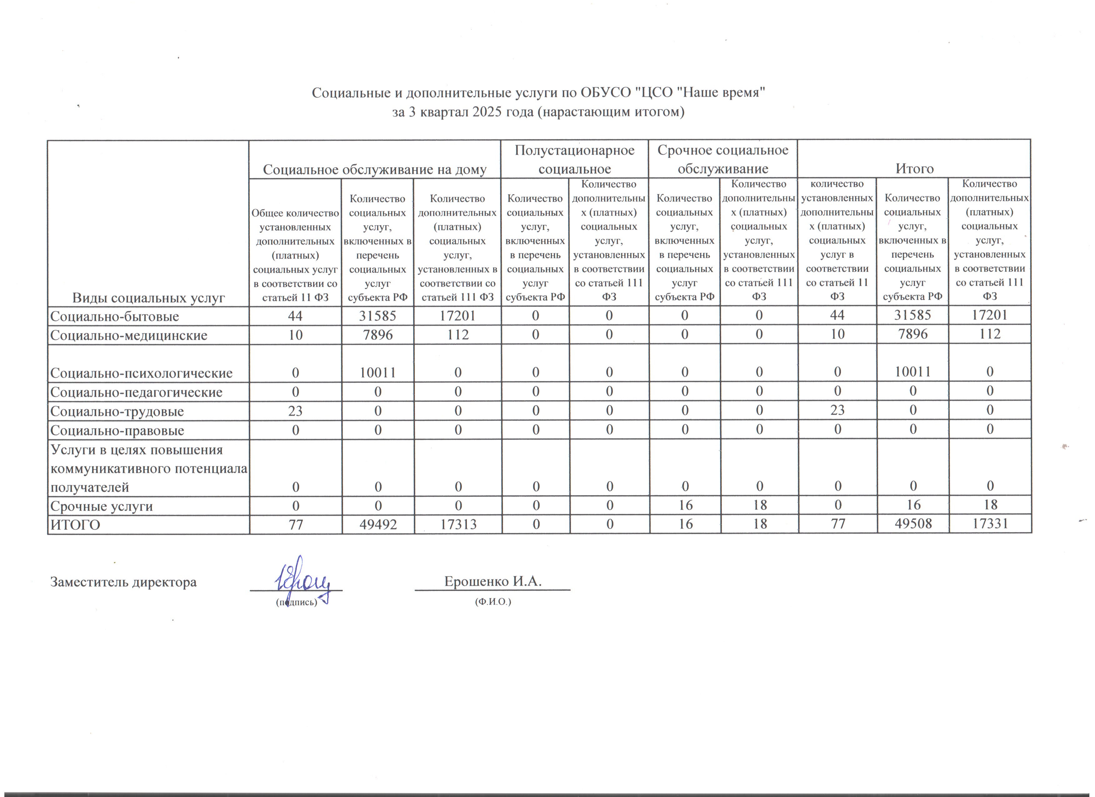 Социальные и дополнительные услуги по ОБУСО «ЦСО «Наше время» за 3 квартал 2025 года